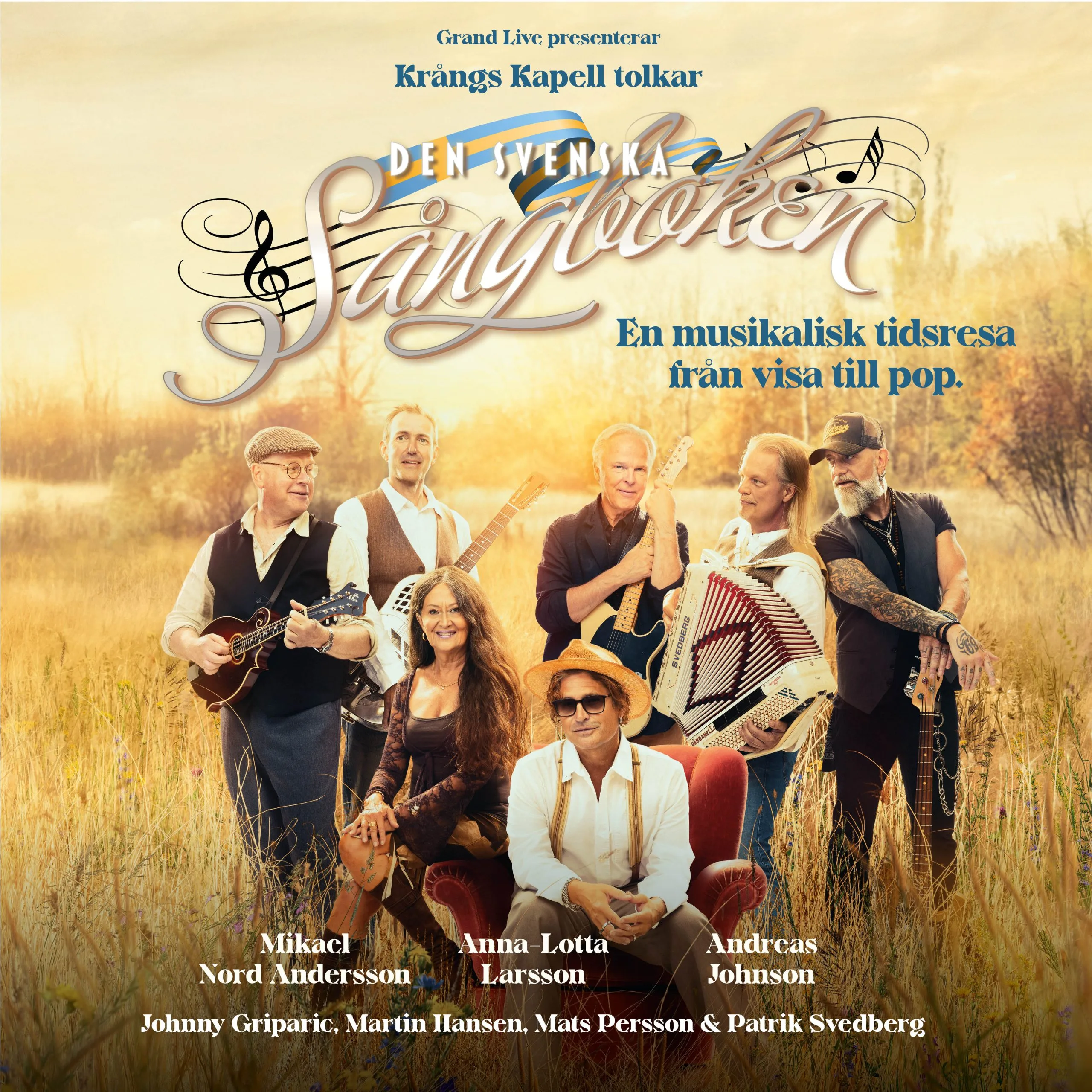 En oförglömlig resa genom den svenska musikhistorien ANDREAS JOHNSON – ANNA-LOTTA LARSSON MIKAEL NORD ANDERSSON – MARTIN HANSEN JOHNNY GRIPARIC – MATS PERSSON – PATRIK SVEDBERG Möt Krångs Kapell i vår när de ger sig ut på vägarna och hyllar Den Svenska Sångboken. ...