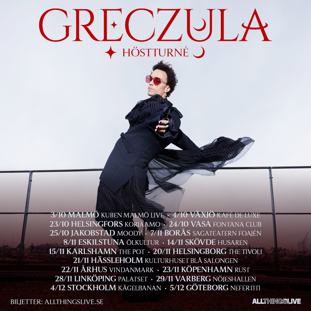Efter ett spektakulärt genombrott i årets Melodifestival, där han flög in med sin vita flygel och tog hela Sverige med storm, är det nu dags för Greczula att bege sig ut på höstturné!